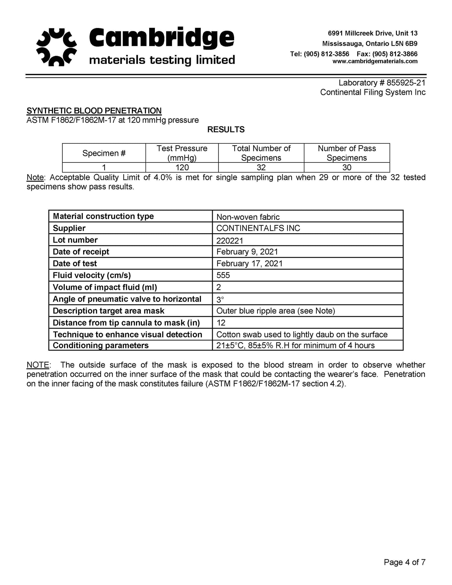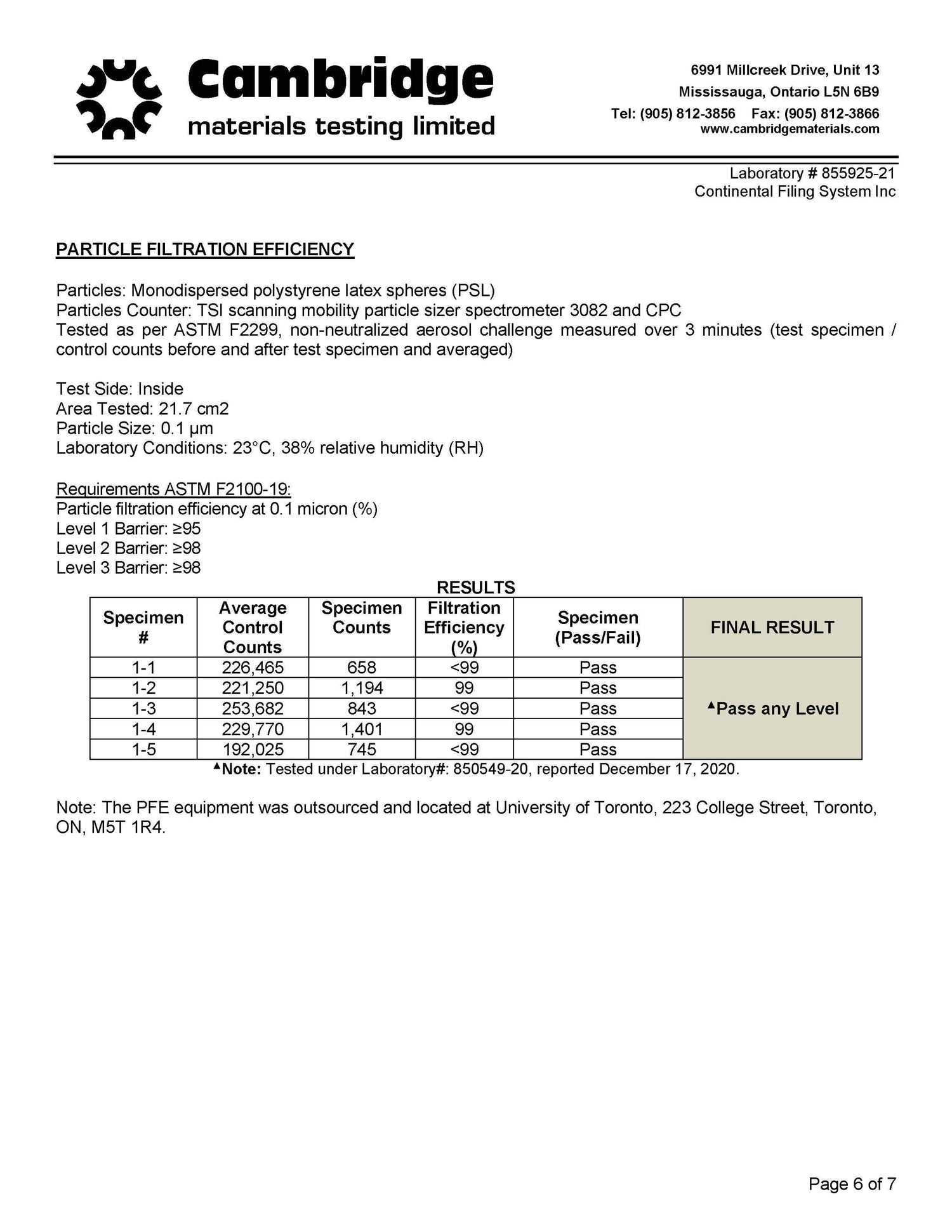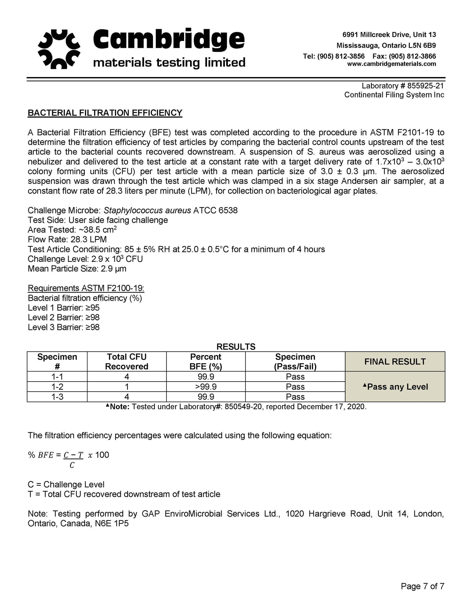 | Filtration Efficiency | ≥ 99 % BFE (see test report on product images) |