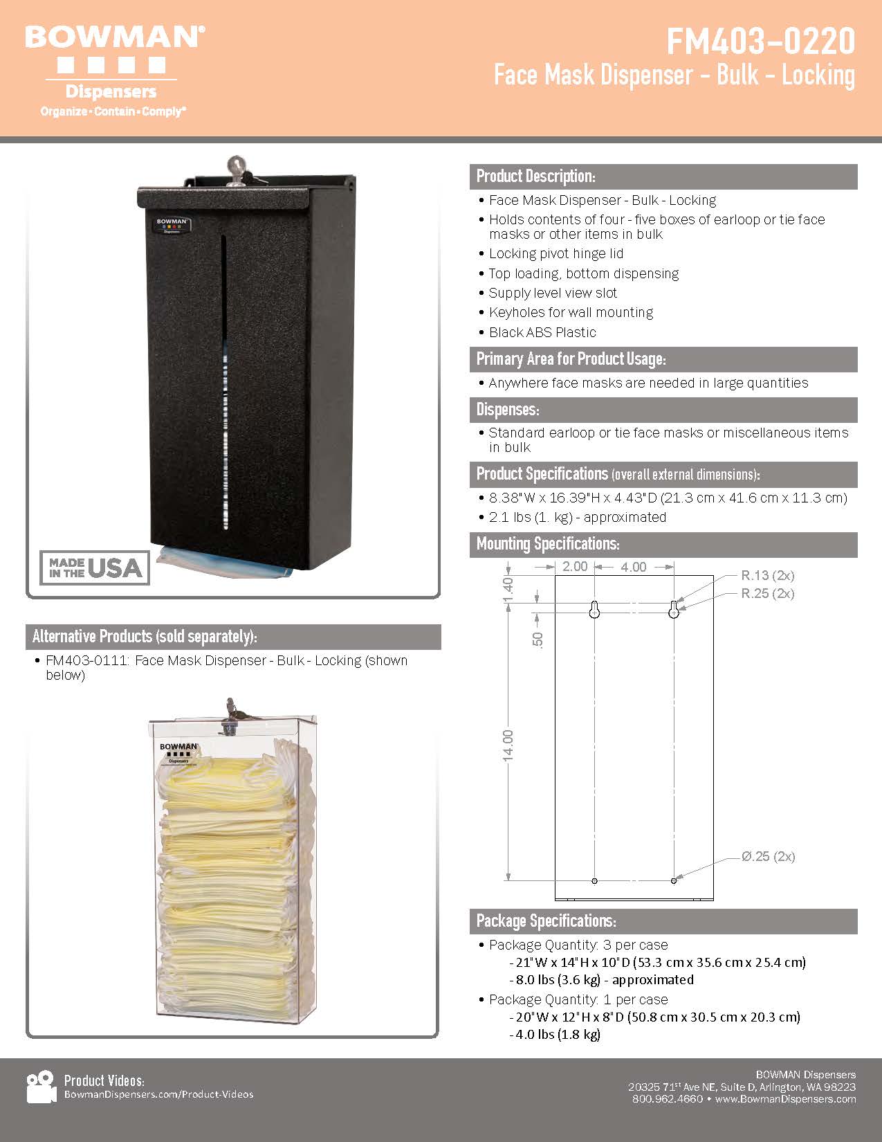 Locking Face Mask Dispenser - FM403-0220