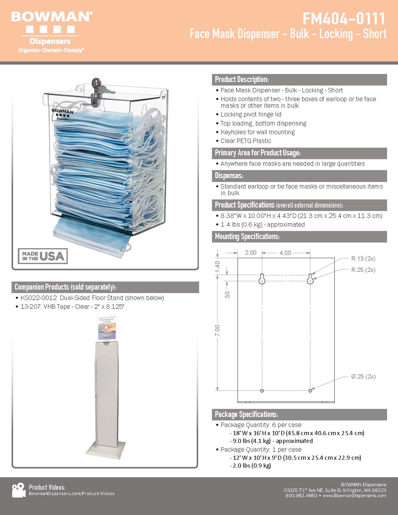 Face Mask Dispenser - Locking-Short is backordered and will ship as soon as it is back in stock.