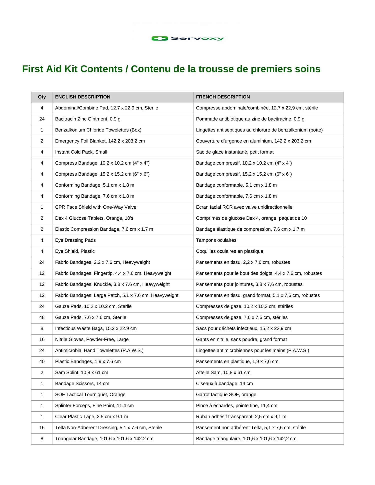 Servoxy specializes in a wide range of high-quality medical supplies, including first aid kits, trauma gear, sterile gauze bandages, protective plastic bandages, and antiseptic towelettes. Our products are designed to meet the needs of both individual consumers and first responders.